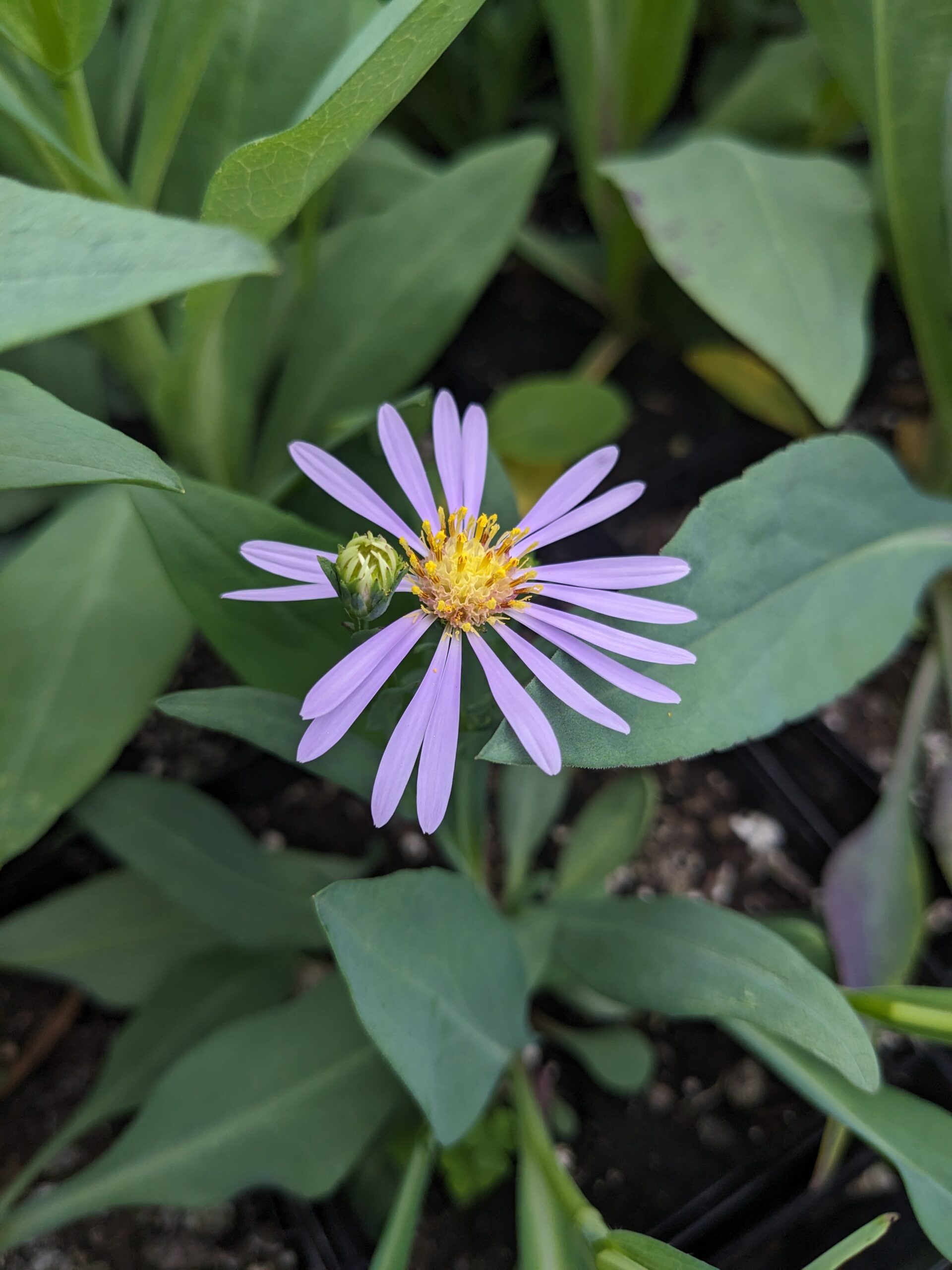 Very attractive and fragrant flowers that are lavender-blue rays surround a central yellow disk on this low-maintenance aster with smooth blue-green foliage.